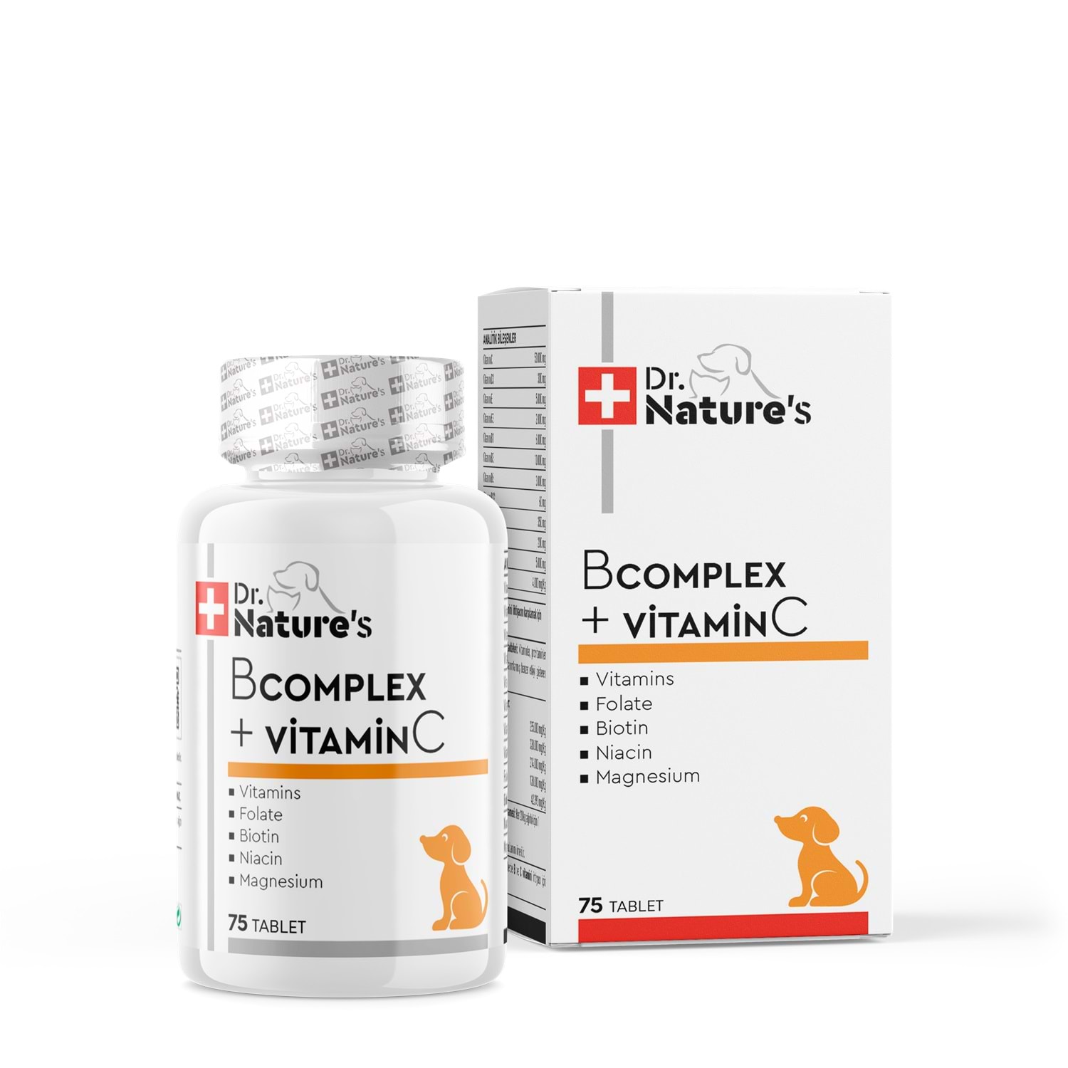 Dr. Nature’s B-Complex, köpeklerde enerji metabolizması, sinir sistemi fonksiyonları ve deri-tüy sağlığını desteklemek için formüle edilmiş geniş spektrumlu bir B vitamini kompleksidir. Vitamin B1, B2, B6 ve B12; enerji ve sinir sistemi fonksiyonlarını desteklerken, Niacin ve Biotin deri ve tüy sağlığının korunmasına yardımcı olur. Vitamin C ilavesi, antioksidan destek sunarak genel bağışıklık fonksiyonlarını destekler. İştahsızlık, halsizlik ve tüy kalitesinde düşüş görülen durumlarda günlük destek amacıyla kullanılabilir.