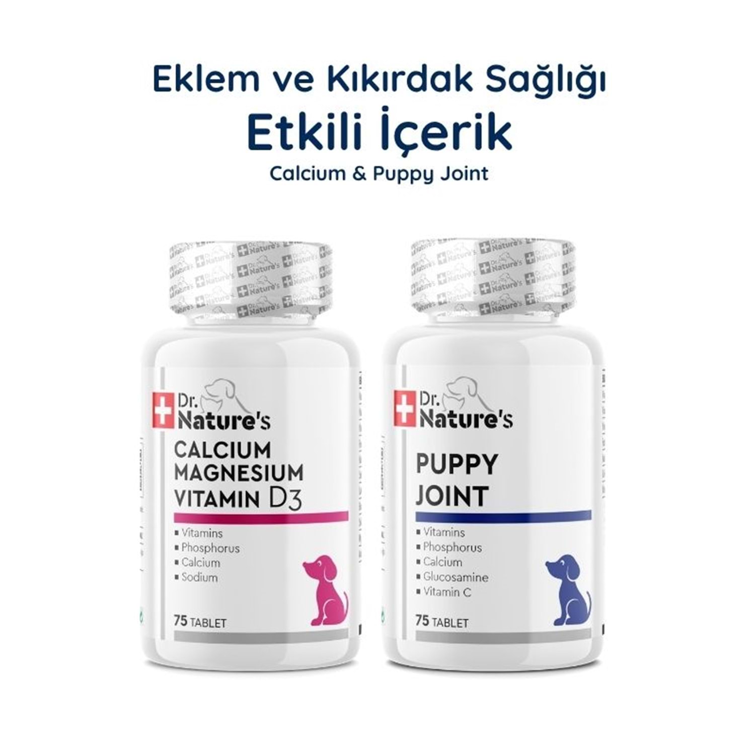 Birlikte kullanıldığında Dr. Nature’s Glukozamin + Kalsiyum seti, köpeklerin hareket sistemi bakımını destekleyen pratik bir günlük destek paketi sunar.